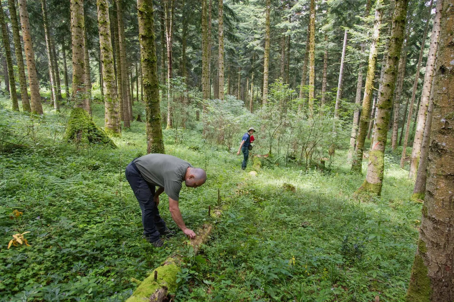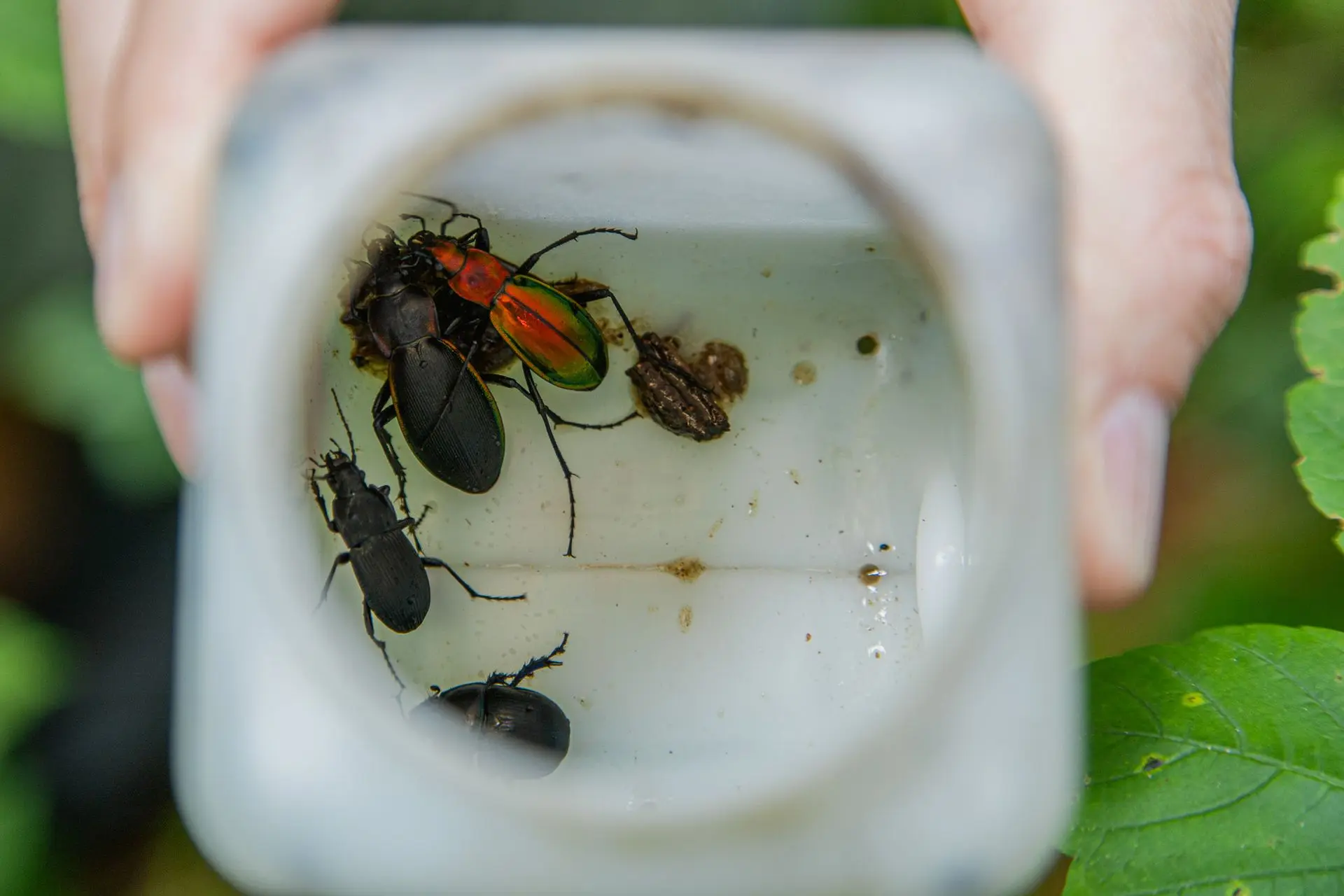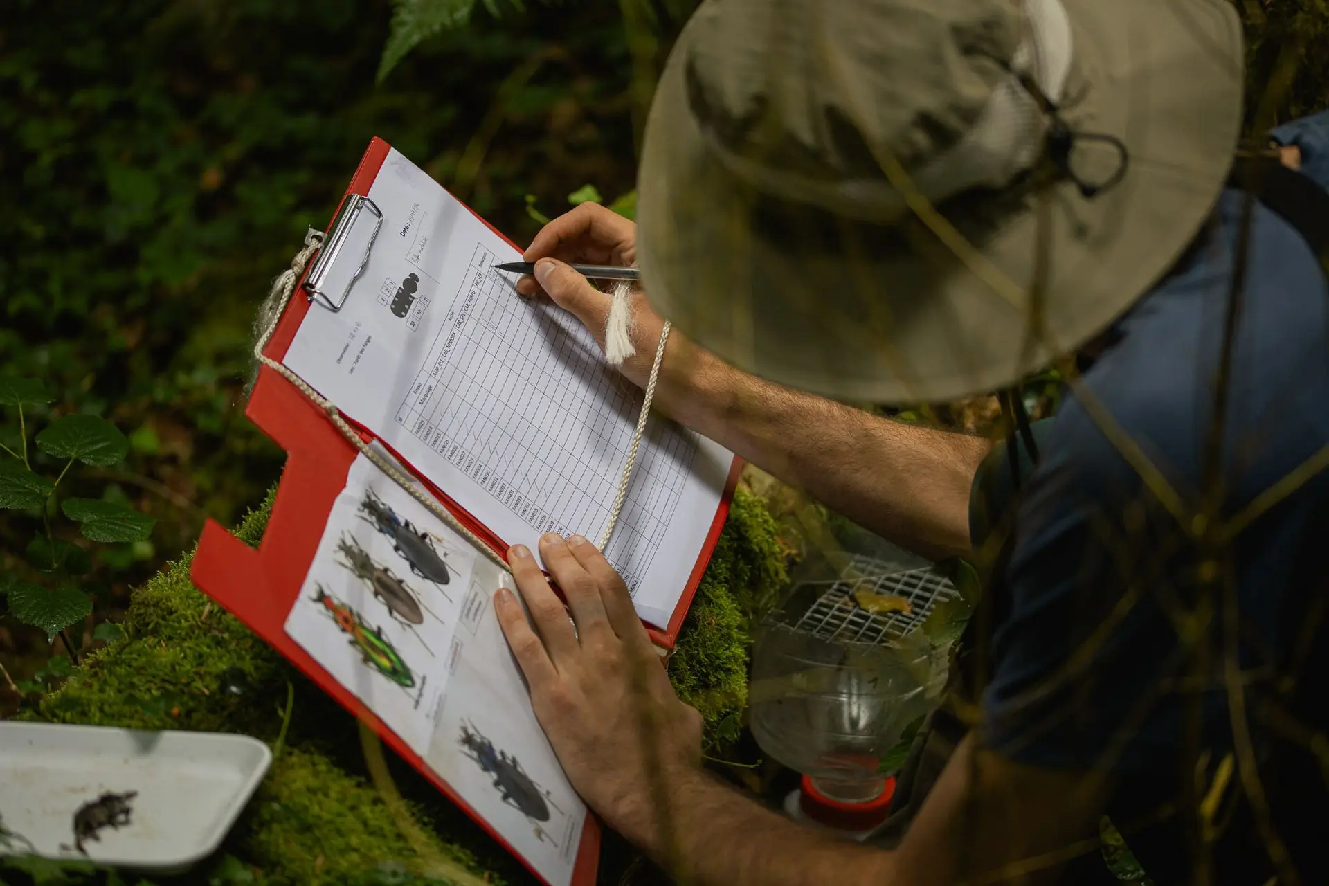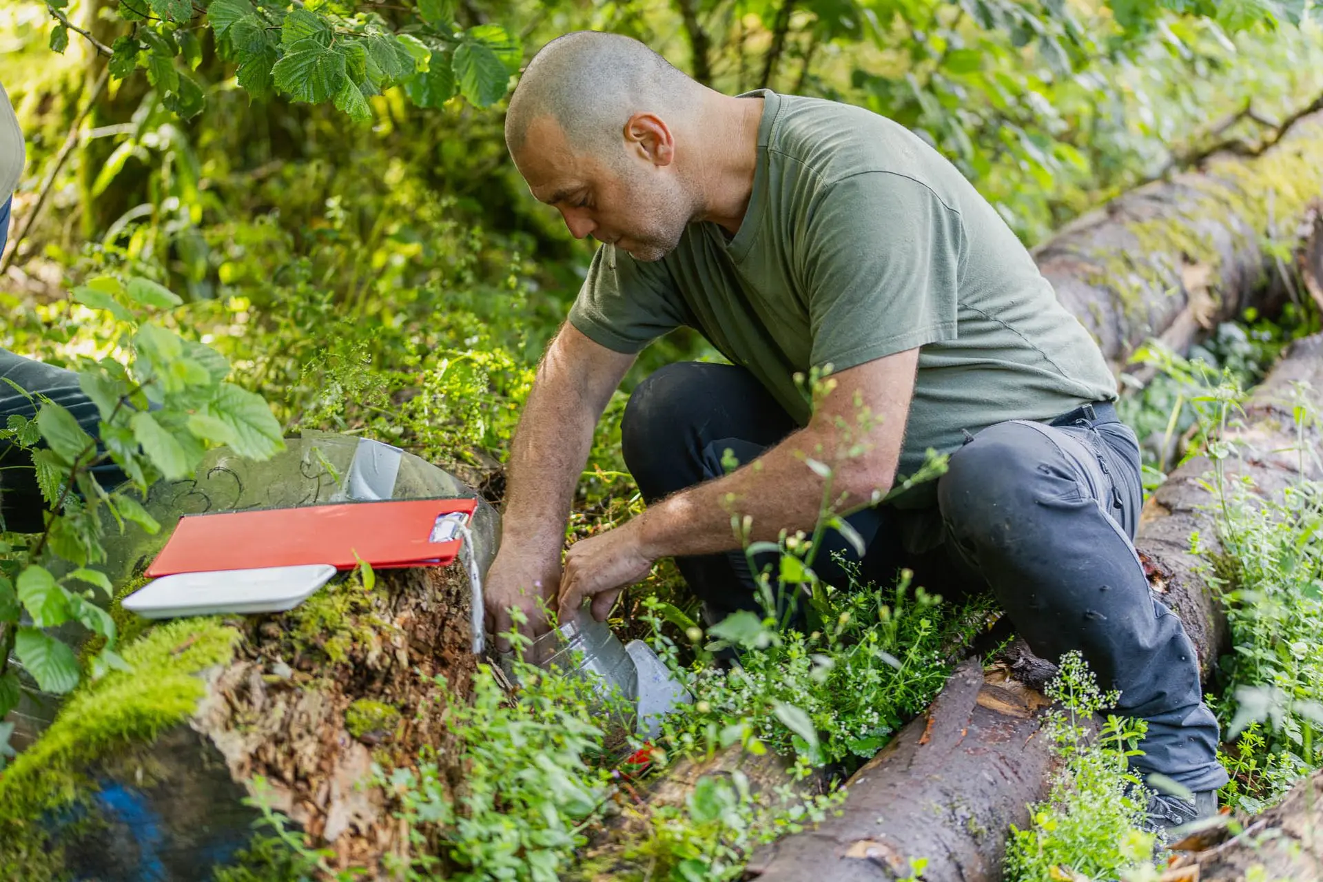 Chaque semaine, l'équipe relève les pièges pour inventorier les insectes capturés. Ces données sont enregistrées minutieusement pour évaluer la diversité et l’abondance des espèces présentes. La détection du Rhysode silloné, notamment, est difficile en été car l’insecte semble entrer dans une phase de repos après une intense période d’activité au printemps.